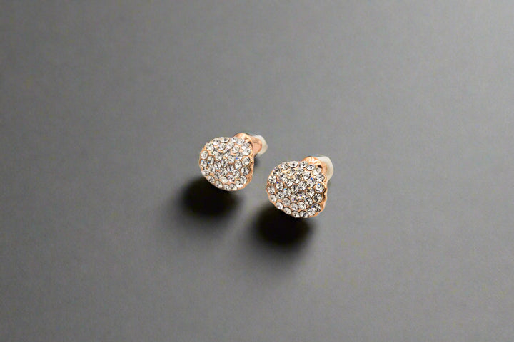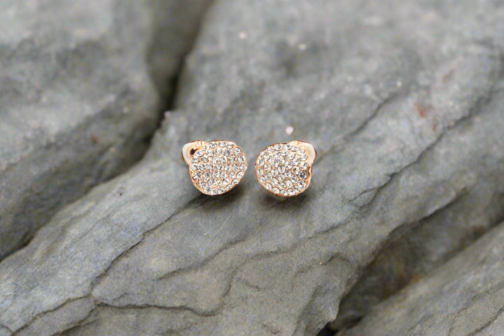 Add a touch of romance and radiance to your look with our Crystal Pavé Heart Studs. These charming heart-shaped earrings are encrusted with a dazzling array of clear crystals, delicately set in a warm rose gold-tone base. The shimmering pavé setting catches the light from every angle, making these studs an instant classic for any jewelry lover.