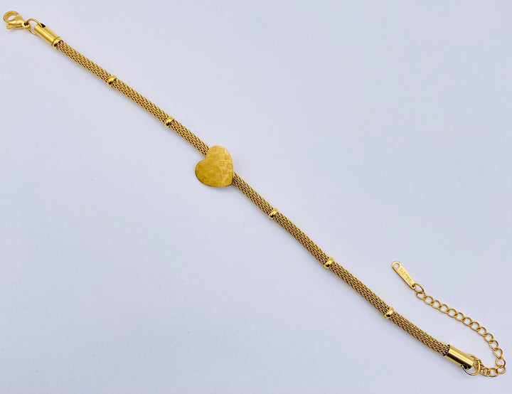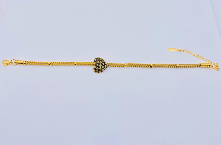 Elevate your everyday elegance with our Golden Mesh Heart Bracelet — a stunning fusion of modern minimalism and designer flair. Featuring a soft gold mesh band that wraps gently around the wrist, the focal point is a heart-shaped charm etched with a luxury-inspired monogram pattern, offering timeless appeal with a subtle statement.