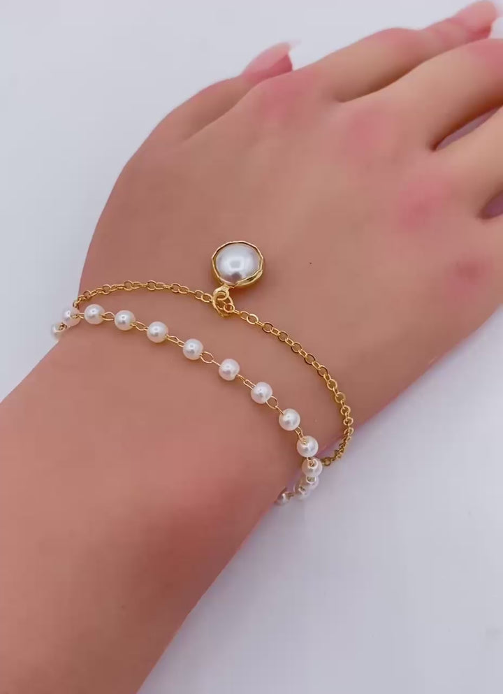 This stylish Pearl Double Layer Gold Bracelet adds a touch of elegance to any outfit. Made with high-quality pearls and a double layer of gold for durability, this bracelet is perfect for any occasion. Its versatile design makes it a must-have accessory for any fashion-forward individual.