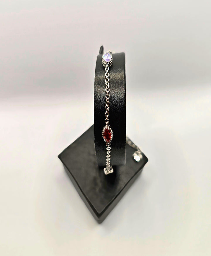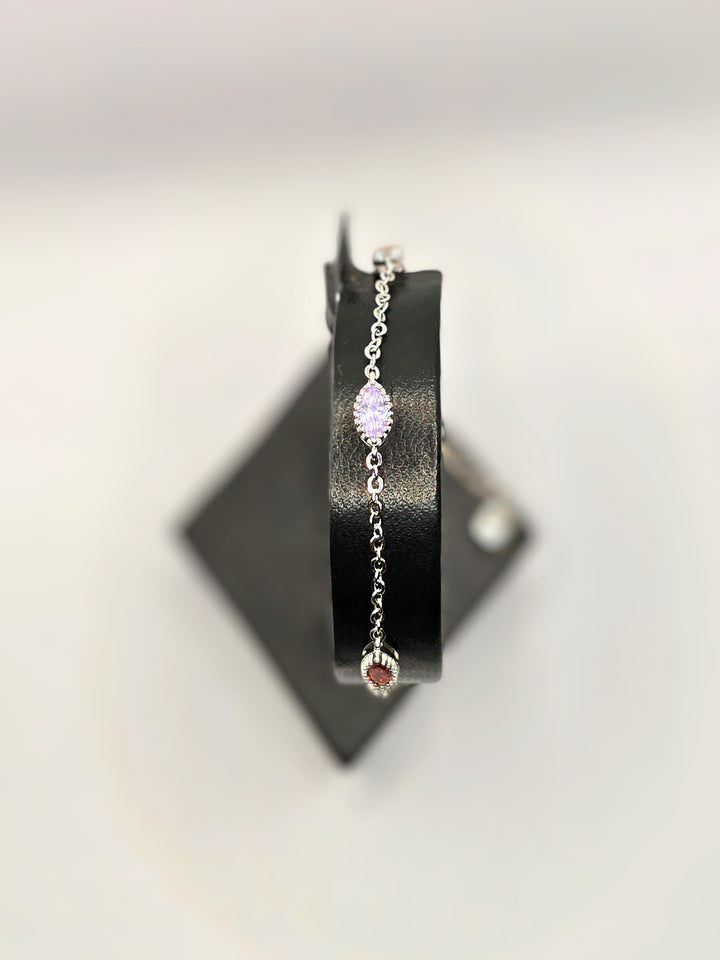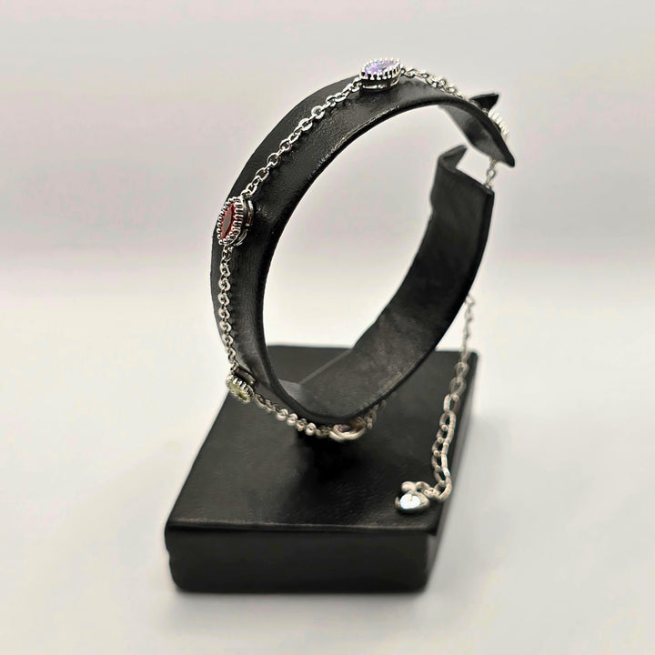 Add a splash of playful elegance to your look with this dainty silver-tone bracelet, featuring an array of multicolor gemstone-inspired accents. Each vibrant gem is bezel-set and evenly spaced along a sleek silver chain, giving the piece a contemporary, whimsical feel.