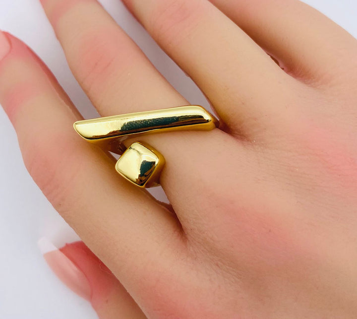 Understated yet unmistakably bold, the Sleek Molten Dome Ring is a modern essential crafted in gleaming gold plating. Its smooth, elongated dome silhouette creates a fluid, liquid-metal look — perfect for adding an effortlessly chic touch to any ensemble.