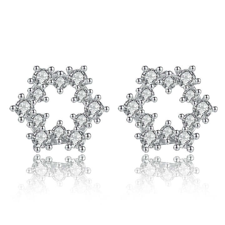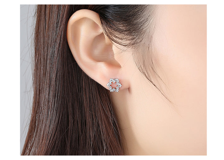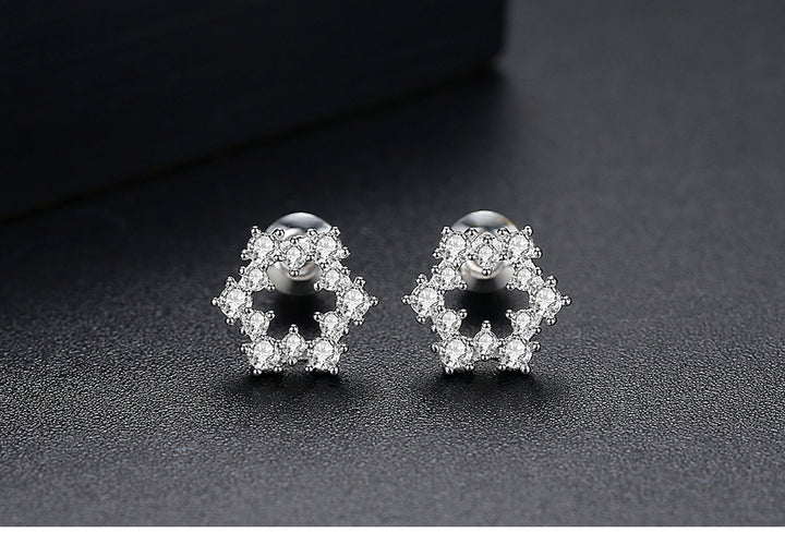 Elevate your everyday elegance with our Sparkling Hexagon Diamond Stud Earrings. Featuring a unique open hexagon design, each earring is meticulously crafted from high-quality sterling silver and adorned with shimmering cubic zirconia stones that catch the light from every angle. The geometric shape adds a modern twist to a timeless silhouette, making these studs perfect for both daily wear and special occasions.