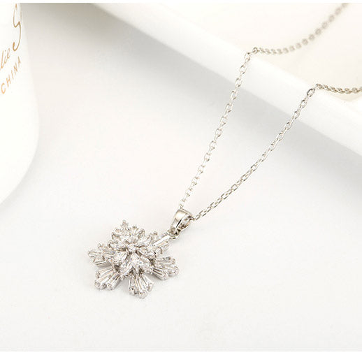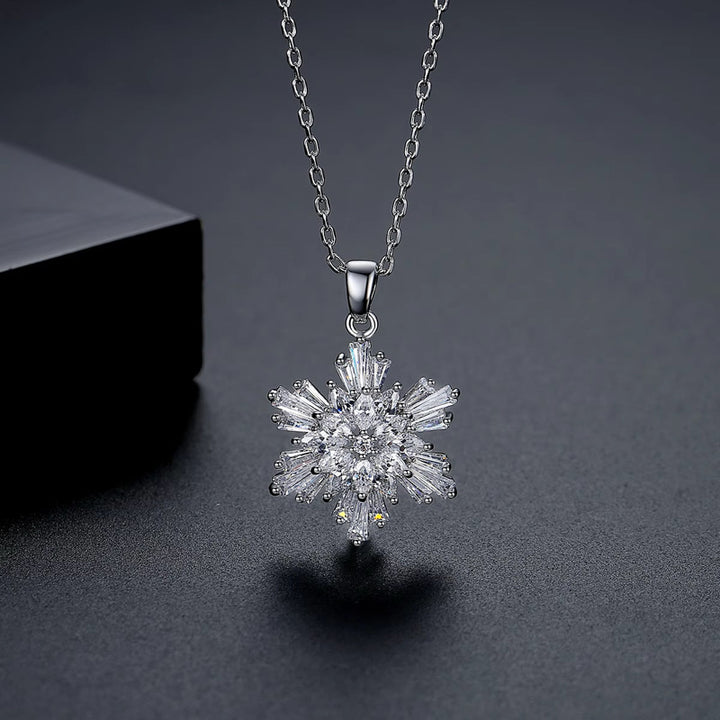 Sparkling Snowflake Pendant Necklace – Silver Tone with CZ Crystals-N-2