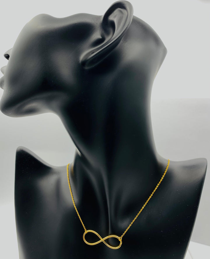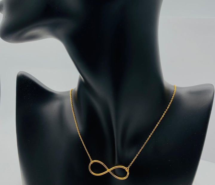 A symbol of eternal love and limitless possibilities, this sleek infinity necklace is crafted in a lustrous gold-tone finish. The minimalistic design showcases a polished infinity symbol suspended from a delicate chain, making it an ideal everyday statement piece or a meaningful gift.