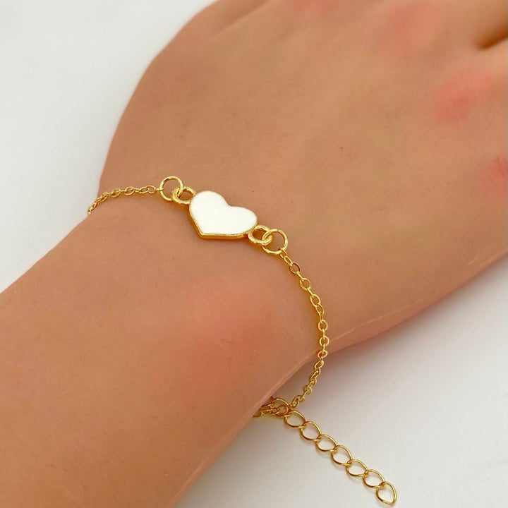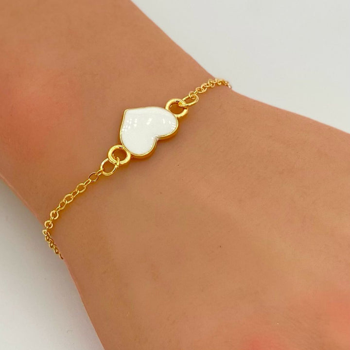 This White Heart Gold bracelet is the perfect accessory to add a touch of elegance to any outfit. Made with high-quality materials, this bracelet features a delicate white heart design and luxurious gold accents. Its classic and versatile style makes it a must-have piece for any jewelry collection.